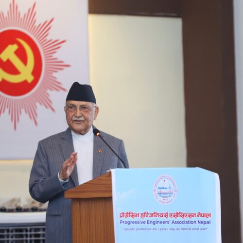 मंगलबार प्रगतिशील इन्जिनियरिङ एसोसिएशनको राष्ट्रिय अधिवेशनमा प्रधानमन्त्रीले डिजिटल नेपाल र समृद्ध नेपाल सुखी नेपालीको राष्ट्रिय आकांक्षालाई साकार पार्न सरकार लागेको भन्दै केही मानिसहरु यस कुरालाई सफल पार्न नदिनको लागि लागिपरेको बताए ।