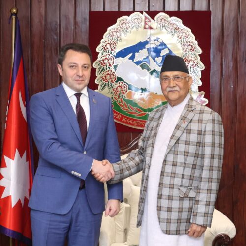 काठमाडौँ । प्रधानमन्त्री केपी शर्मा ओलीसँग अजरबैजानका उपविदेशमन्त्री एलनुर मामेडोभले शिष्टाचार भेट गरेका छन् ।