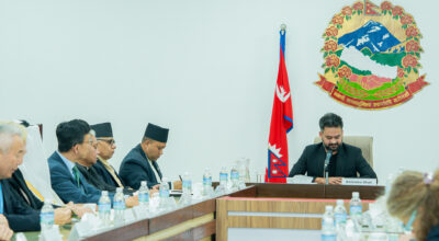 काठमाडौं । प्रधानमन्त्री बालेन साहले कूटनीतिक नियोगका प्रमुखहरूसँग सामूहिक छलफल गरेका छन् । बुधबार सिंहदरबारस्थित प्रधानमन्त्री तथा मन्त्रिपरिषद्को कार्यालयमा प्रधानमन्त्री साहले कूटनीतिक नियोगका प्रमुखहरुसँग सामूहिक छलफल गरेका हुन् । त्यसक्रममा राजदूत एवं नियोग प्रमुखहरूले प्रधानमन्त्रीथप समाचार