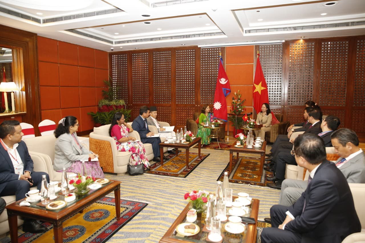 त्यस्तै उनले भेटका क्रममा भियतनामको तीव्र आर्थिक विकास र वृद्धिप्रति बधाई दिँदै नेपालले पर्यटन, व्यापार र लगानीलगायत विभिन्न क्षेत्रमा सहकार्य विस्तार गर्ने इच्छाशक्ति देखाएको बताइन् ।