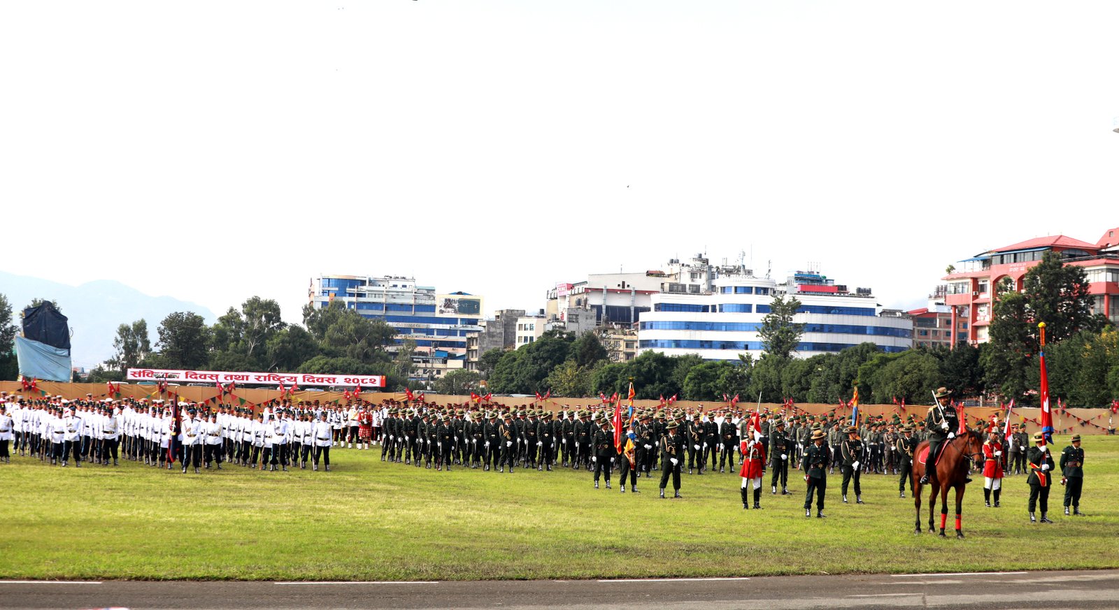 काठमाडौं । संविधान दिवस तथा राष्ट्रिय दिवस, २०८२ यस वर्ष विगतमा झैँ विविध कार्यक्रमको आयोजना गरी मनाइएको छ । राष्ट्रपति रामचन्द्र पौडेलको प्रमुख आतिथ्यतामा सैनिक मञ्च, टुँडिखेलमा विशेष कार्यक्रम आयोजना गरिएको छ ।