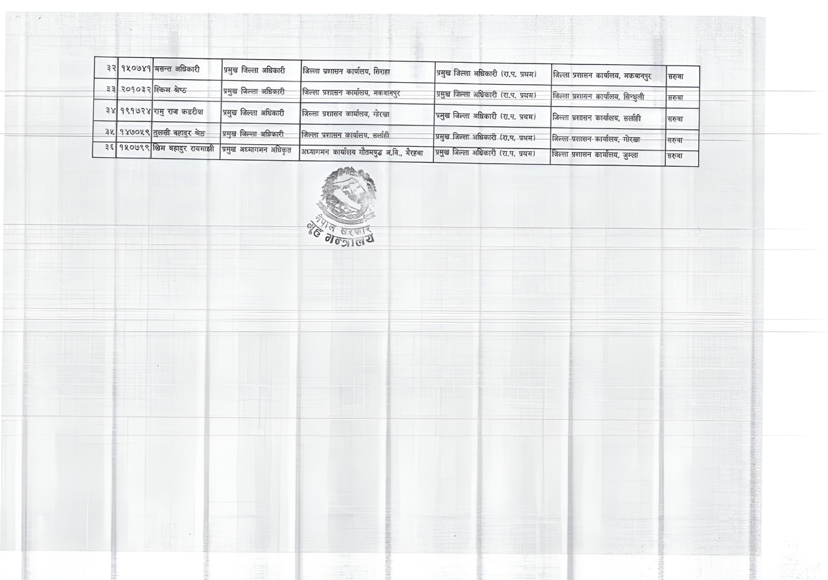 ३० जिल्लाका प्रमुख जिल्ला अधिकारीको सरुवा(सूचीसहित)