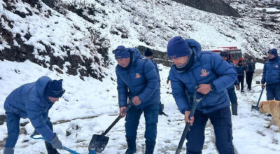 मुस्ताङको वारागुङ मुक्तिक्षेत्र गाउँपालिका-१ खिङ्गा गाउँमा परेको हिउँ। तस्बिरः सुशीलबाबु थकाली/रासस