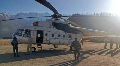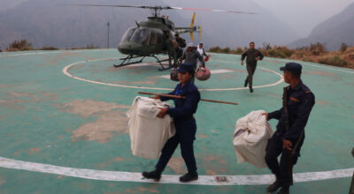 रुकुमपूर्व । रुकुमपूर्वका तीन वटा मतदान केन्द्रको मतपेटिका नेपाली सेनाको हेलिकोप्टरमार्फत निर्वाचन अधिकृतको कार्यालयमा ल्याइएको