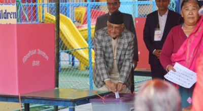 काठमाडौं । नेकपा एमालेका अध्यक्ष केपी शर्मा ओलीले भक्तपुरको बालकोटबाट मतदान गरेका छन् । अध्यक्ष