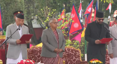 काठमाडौं । सरकारका नवनियुक्त मन्त्रीहरूले शपथ लिएका छन् । शुक्रबार मध्यान्ह राष्ट्रपति कार्यालय, शीतलनिवासमा आयोजित