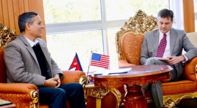 काठमाडौँ । गृहमन्त्री ओमप्रकाश अर्यालसँग नेपालका लागि अमेरिकी कार्यवाहक राजदूत स्कट अर्बमले शिष्टाचार भेटवार्ता गरेका