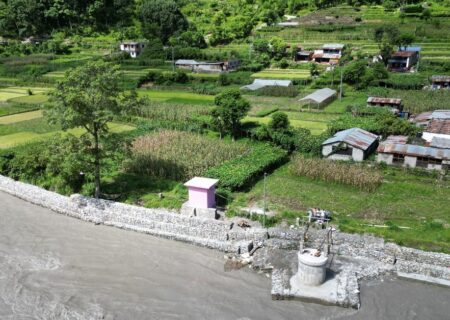 म्याग्दी। कालीगण्डकीको कटान र बाढीको जोखिममा रहेको बेनी नगरपालिका–१ लामगरामा तटबन्ध निर्माण भएको छ ।