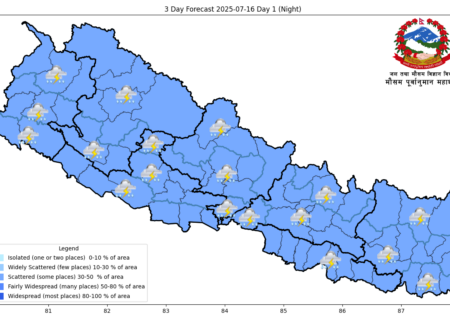 काठमाडौँ । हाल देशभर मनसुनी वायुको प्रभाव रहेको तथा भारतको उत्तरप्रदेश आसपास रहेको न्यूनचापीय क्षेत्रको