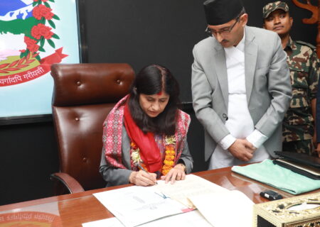 काठमाडौँ । नवनियुक्त सङ्घीय मामिला तथा सामान्य प्रशासनमन्त्री भगवती न्यौपानेले आज साँझ सिंहदरबारस्थित मन्त्रालयमा पदबहाली