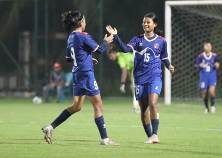 काठमाडौँ ।नेपाली टोलीकी फरवार्ड मीना देउवाको ह्याट्रिकमा नेपालले दक्षिण एसियाली फुटबल महासङ्घ (साफ) यु–२० महिला
