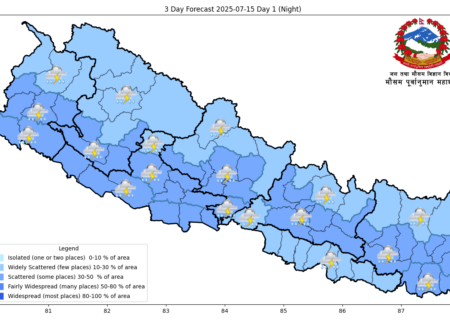 काठमाडौँ । हाल देशभर मनसुनी वायुको प्रभाव रहेको तथा मनसुनको न्यूनचापीय रेखा पश्चिममा सरदर स्थानको