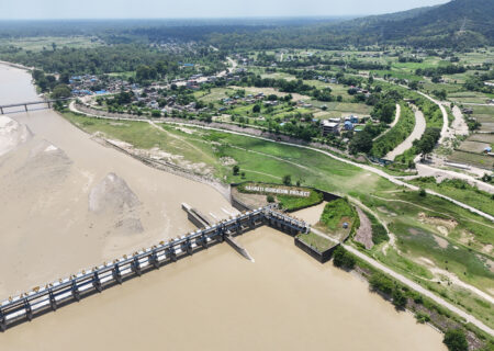 सर्लाहीको बागमती नगरपालिका–११ कर्मैया र रौतहटको चन्द्रपुर नगरपालिका–१ मा पर्ने बागमती ड्याम । यस ड्यामबाट