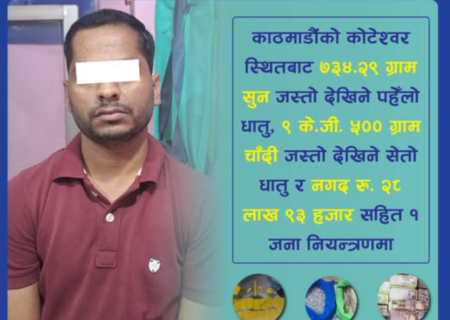 सुन, चाँदी र २९ लाख नगदसहित कोटेश्वरबाट श्रीराम ज्वेलर्सका संचालक पक्राउ