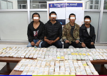 काठमाडौँको पिङ्गलास्थानबाट ९५ लाख १७ हजार रुपैयाँसहित चार जना पक्राउ