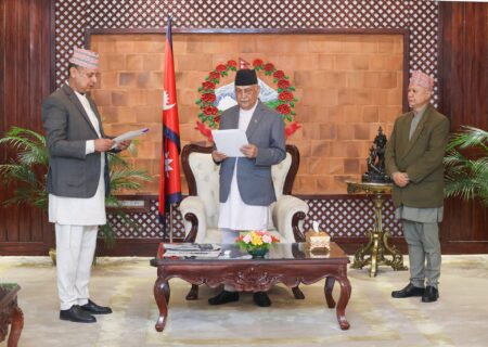 त्रिविका नवनियुक्त उपकुलपति अर्यालले लिए प्रधानमन्त्रीसमक्ष सपथ