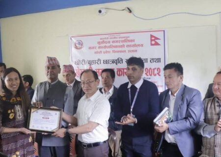 छोरीबुहारीलाई उच्च शिक्षामा छात्रवृत्ति दिँदै इलामको सूर्योदय नगरपालिका