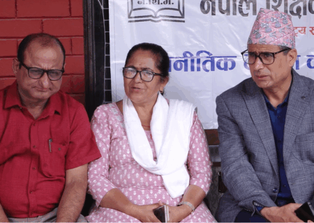 राप्रपा पार्टी कार्यालयमा शिक्षक महासंघको धर्ना