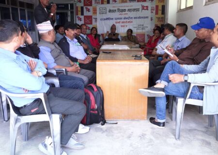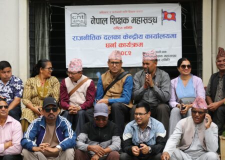 माओवादी पार्टी कार्यालयमा शिक्षक महासंघको धर्ना