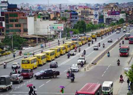 विद्यालय शिक्षा विधेयकको विरोधमा निजी विद्यालय सञ्चालकहरुको चक्रपथमा बससहितको र्याली