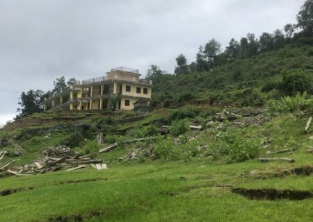 स्थानान्तरण गरिएको ओखरबोट माविको भवन पहिरोको जोखिममा