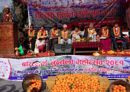 बाँसखर्कमा सुन्तला महोत्सव : अतिथिलाई सुन्तलाकै माला, सुन्तला नै उपहार