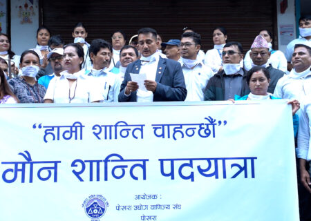पोखरामा उद्योग वाणिज्य संघद्वारा शान्तिपूर्ण पदयात्रा आयोजना