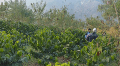 काभ्रेका किसान मल्चिङ विधिबाट कफीेखेती गर्दै