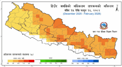 यसवर्ष हिउँदमा वर्षा कम तर अधिकतम र न्यूनतम तापक्रम बढी हुने