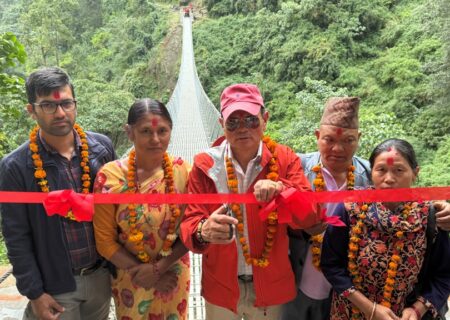 बुकेनी र धापुङ्ग गाउँ जोड्न झोलुङ्गे पुल निर्माण, दुई सय घरपरिवार लाभान्वित