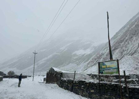 उत्तरी गोरखामा हिमपात, मनास्लु क्षेत्र भ्रमणमा गएका पर्यटक प्रभावित