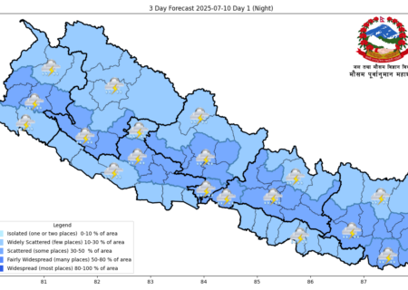 बागमती, गण्डकी, लुम्बिनी, कर्णाली र सुदूरपश्चिम प्रदेशमा भारी वर्षा हुने