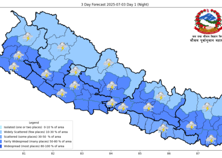 कोशी, वाग्मती, गण्डकी र लुम्बिनी प्रदेशमा भारी वर्षा हुने
