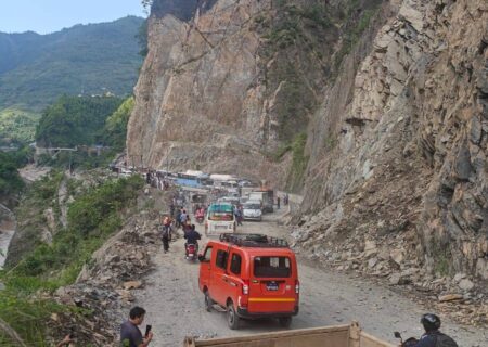 मुग्लिन-नारायणगढ सडकखण्डको तुइनखोला नजिकै पहिरो, सडक अवरुद्ध