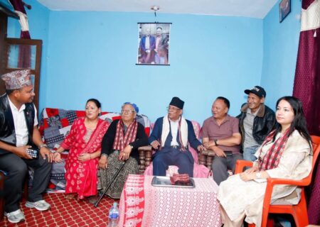 पत्रकार डेकेन्द्र थापाको परिवारसँग प्रचण्डको भेट