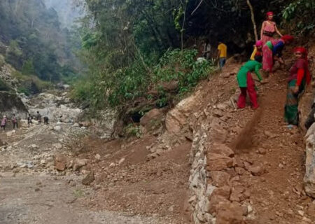 सरकारले बजेट नदिएपछि श्रमदानबाट स्थानीय आफैँले बनाउन थाले ग्वारखोलामा पुल