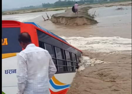 हेर्दाहेर्दै बगायो त्रियुगा नदीको बाढीले बस(भिडियोसहित)