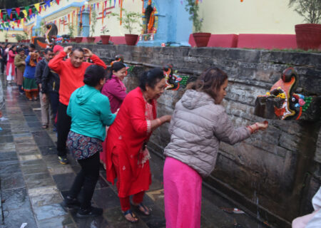 बौद्धमा बत्ती बालेर तामाङ समुदायद्वारा बालाजुमा स्नान