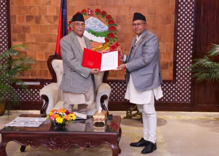 प्रधानमन्त्रीसमक्ष अन्तर–व्यवस्थापिका मञ्चको घोषणापत्र हस्तान्तरण
