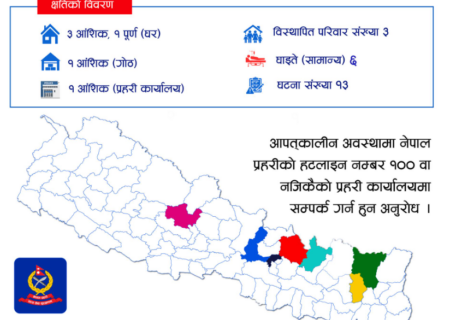 सिन्धुपाल्चोकमा भूकम्पबाट ६ जना घाइते, पाँच घरगोठ र एक प्रहरी कार्यालयमा क्षति