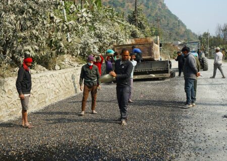 बेनी–दरवाङ सडकः रणवाङ–दरवाङ खण्डमा कालोपत्र सुरू