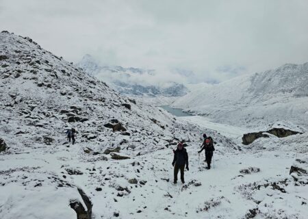 सगरमाथा क्षेत्रमा असामान्य मौसम परिवर्तन, खुम्बुमा असोजमै हिमपात