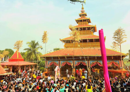 हेलिकप्टरबाट सप्तरीको कंंकालिनी र छिन्नमस्ता मन्दिरमा पुष्प वृष्टि