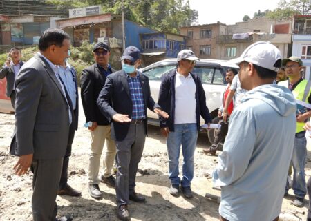मन्त्री घिसिङद्वारा सूर्यविनायक–धुलिखेल सडकको अनुगमन, कामलाई तव्रता दिन निर्देशन