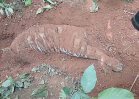 अरुणखोलामा पाटे बाघ मारेर गाडेको अवस्थामा फेला