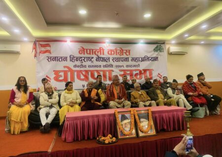 महासमिति बैठकको पूर्वसन्ध्यामा कांग्रेस नेताहरुले गरे सनातन हिन्दूराष्ट्र स्थापना महाअभियानको घोषणा