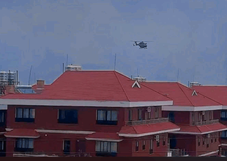 नेताहरुलाई हेलिकप्टरबाट सुरक्षित स्थानमा लैजाँदै सेना