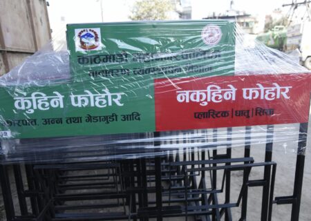 सार्वजनिकस्थलमा फोहोर वर्गीकरण बिन सेट राख्दै काठमाडौं महानगरपालिका