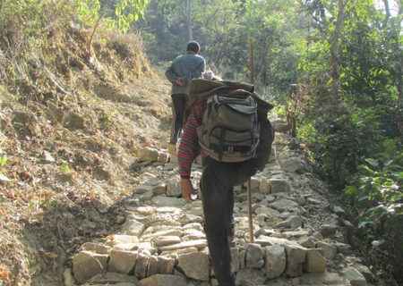 सडक नहुँदा पिठ्यूँमै सामान बोक्दै चुरे क्षेत्रका बासिन्दा