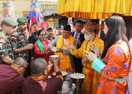 राष्ट्रपति पौडेलद्वारा बौद्धस्थित ल्हाखाङ गुम्बामा पूजा, आराधना
